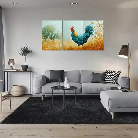 3pcs Colorful Rooster Farmhouse Decor Metal Print Ready to Hang Art