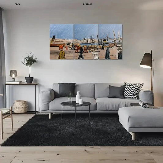 3pcs Vibrant Nautical Coastal Harbor Life Metal Print Ready to Hang Art