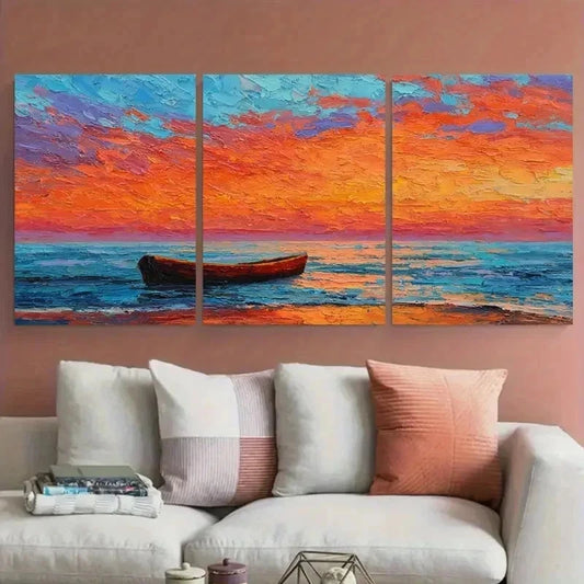 3pcs Textured Impressionist Ocean Sky Perfect Wall Art Canvas Framed 60x90cm