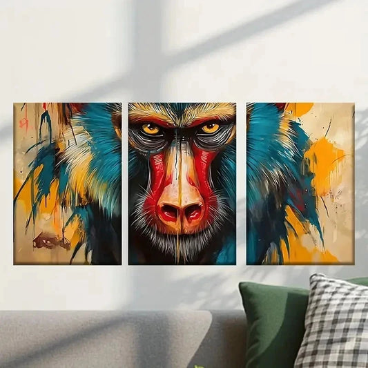 3pcs Monkey with a Red Nose and Blue Eyes Wall Art Set Canvas Framed 40x60cm - High Quality Print 100% Australian Made Wall Canvas Ready to Hang