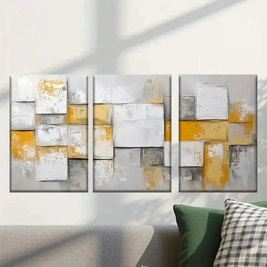 3pcs Abstract Yellow & Grey Geometric Wall Art Set Canvas Framed 40x60cm - High Quality Print 100% Australian Made Wall Canvas Ready to Hang