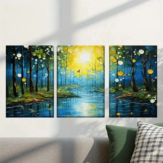 3pcs Forest with a River And Trees Wall Art Set Canvas Framed 40x60cm - High Quality Print 100% Australian Made Wall Canvas Ready to Hang