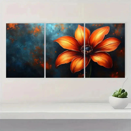 3pcs Orange Floral Oil Painting Metal Print Ready to Hang Art
