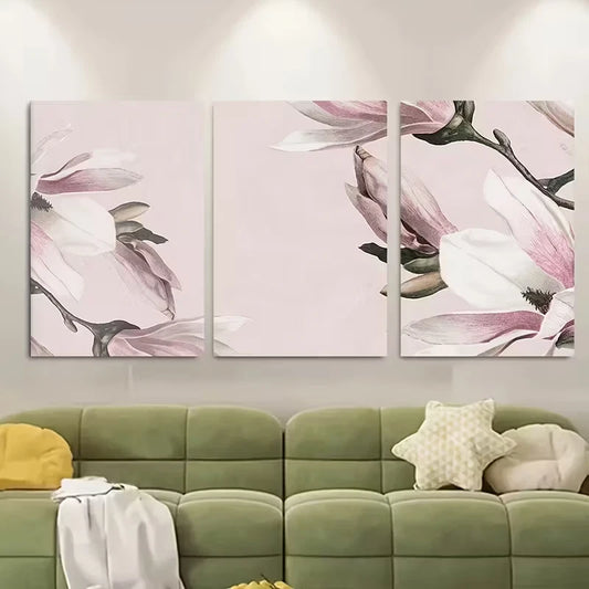 3pcs Light Pink Magnolia Blossom Metal Print Ready to Hang Art