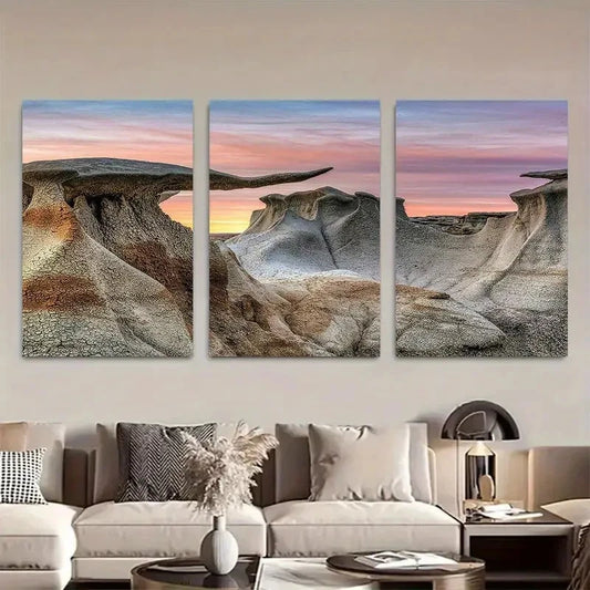 3pcs Bisti Badlands Landscape with Stone Wings Metal Print Ready to Hang Art