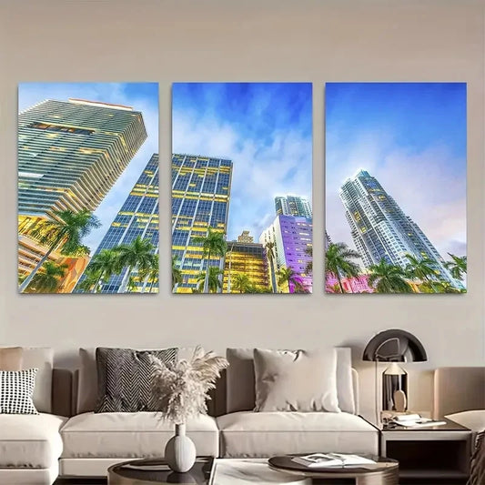3pcs Downtown Miami at Skyrise Florida Metal Print Ready to Hang Art
