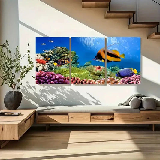 3pcs Marine Life Coral Reef Wall Art Metal Print Ready to Hang Art