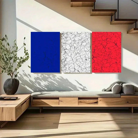 3pcs France Flag Cracked Effect Metal Print Ready to Hang Art