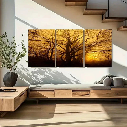 3pcs Foggy Mist Forest Trees Metal Print Ready to Hang Art