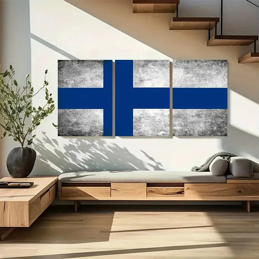 3pcs Finland Flag Grunge Effect Metal Print Ready to Hang Art