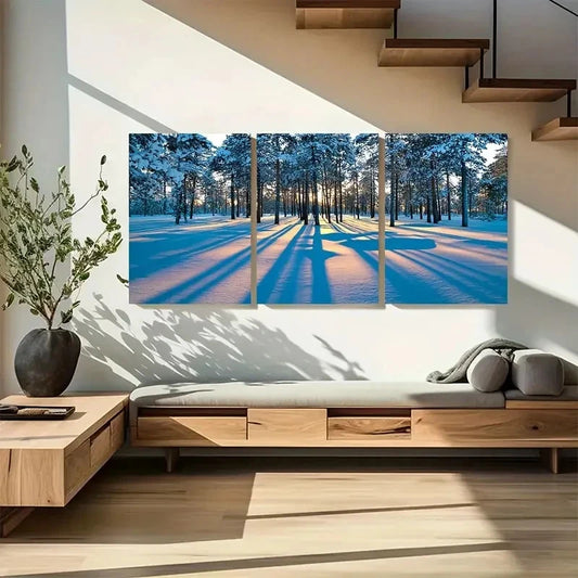 3pcs Winter Sunset in Forest Metal Print Ready to Hang Art