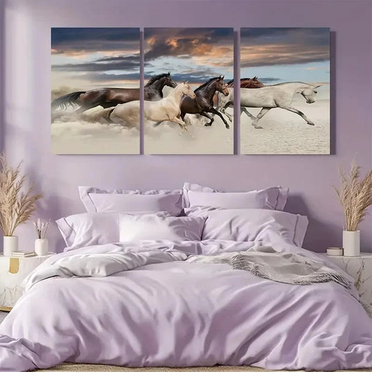 3pcs Vibrant Sunset Scene with Dusty Trail Metal Print Ready to Hang Art