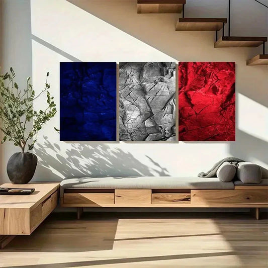 3pcs Vibrant Blue White & Red Marble Design Metal Print Ready to Hang Art