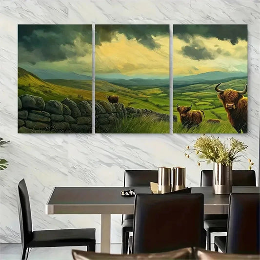 3pcs Scottish Landscape with Stormy Sky Metal Print Ready to Hang Art