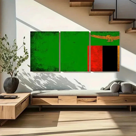 3pcs Zambia Country Flag Grunge Metal Print Ready to Hang Art