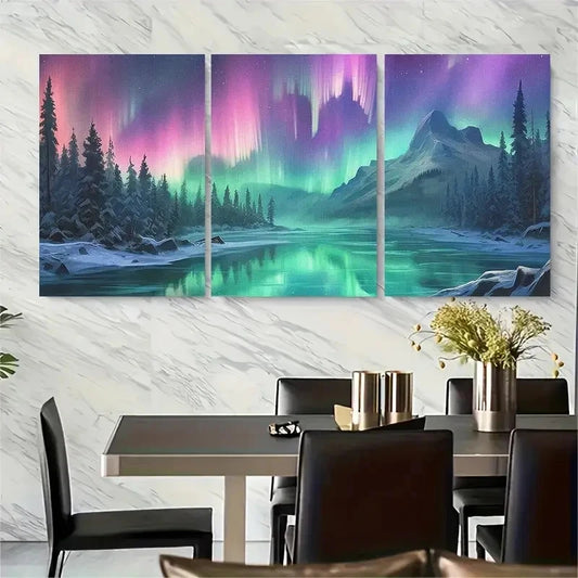 3pcs Northern Lights Landscape Metal Print Ready to Hang Art