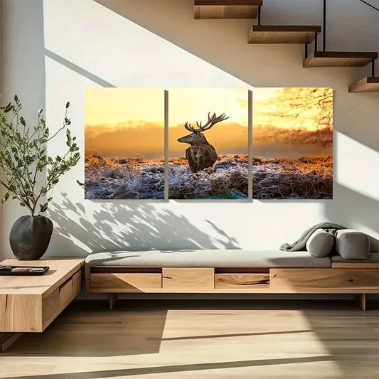 3pcs Deer in morning sun 3 Panel Metal Print Ready to Hang Art