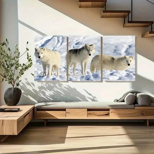 3pcs Three White Wolves in Snow Metal Print Ready to Hang Art