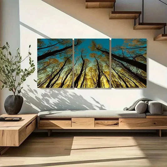 3pcs Triptychof Trees in Forest Metal Print Ready to Hang Art