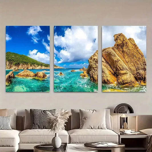 3pcs Scenic Ocean Coastline Metal Print Ready to Hang Art