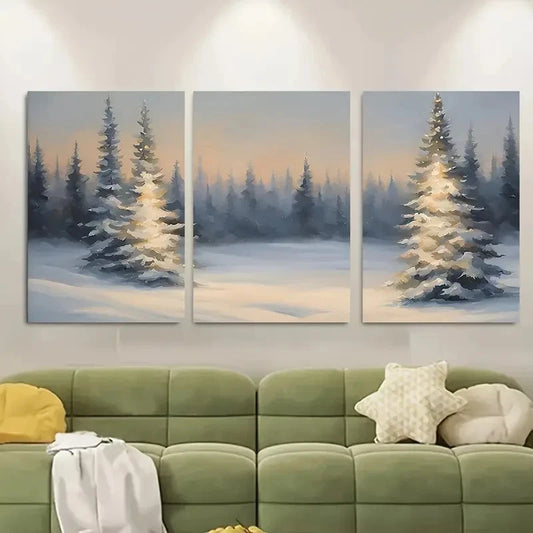 3pcs Snowy Trees Art Wall Art Metal Print Ready to Hang Art