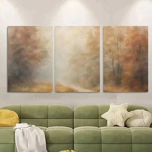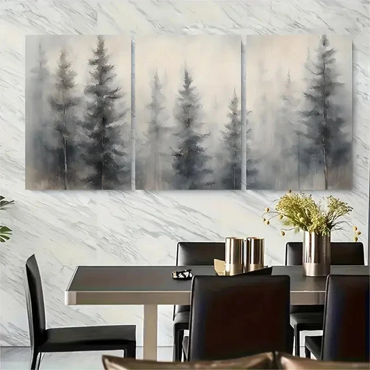 3pcs Serene Misty Pine Trees Scene Metal Print Ready to Hang Art