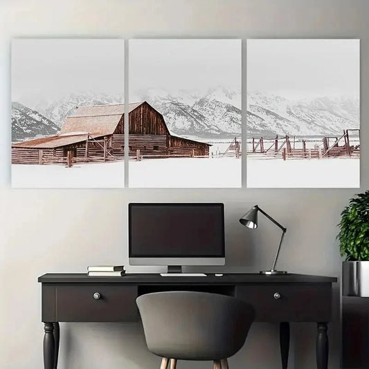 3pcs Rustic Snow Barn Winter Scene Metal Print Ready to Hang Art
