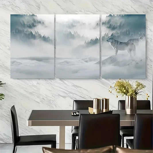 3pcs Wolves in Snowy Forest Metal Print Ready to Hang Art