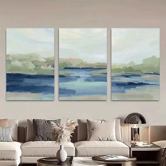 3pcs Blue & Green Seascape Water Scene Wall Art Metal Print Ready to Hang Art