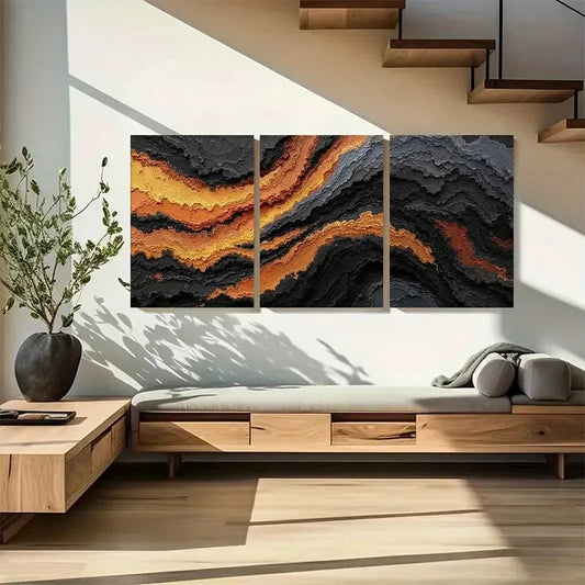 3pcs Black Golden & Burnt Orange Wall Art Metal Print Ready to Hang Art
