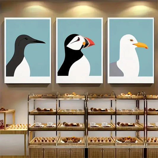 3pcs Seagull Puffin Guillemot Wall Art Metal Print Ready to Hang Art