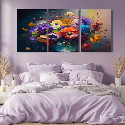 3pcs Bouquet Of Flowers Wall Art Metal Print Ready to Hang Art