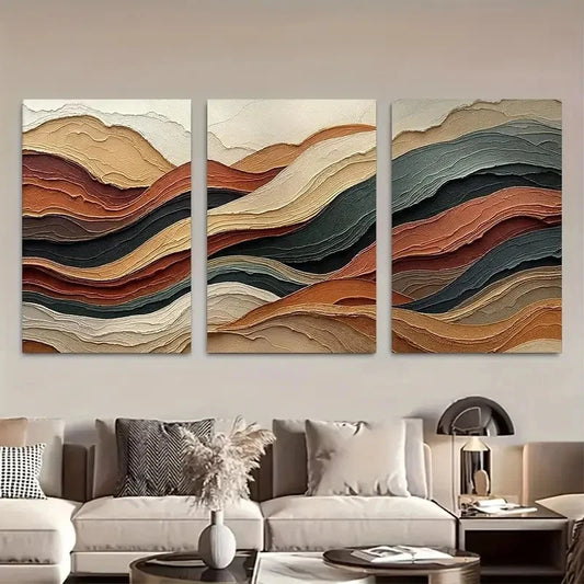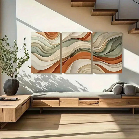 3pcs Beige Terracotta and Green Wave Wall Art Metal Print Ready to Hang Art