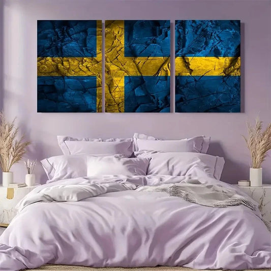 3pcs Sweden Flag Textured Blue & Yellow Wall Art Metal Print Ready to Hang Art