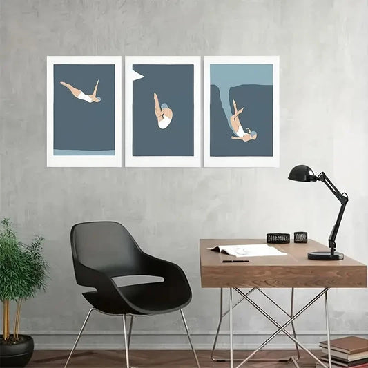 3pcs Woman Diving Wall Art Metal Print Ready to Hang Art
