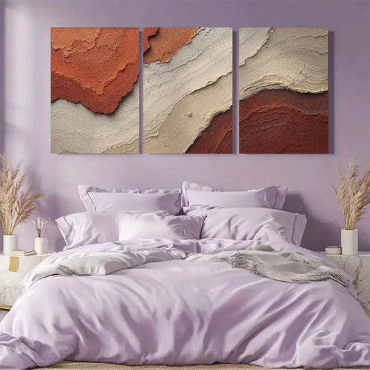 3pcs Terracotta and Beige Abstract Wall Art Metal Print Ready to Hang Art