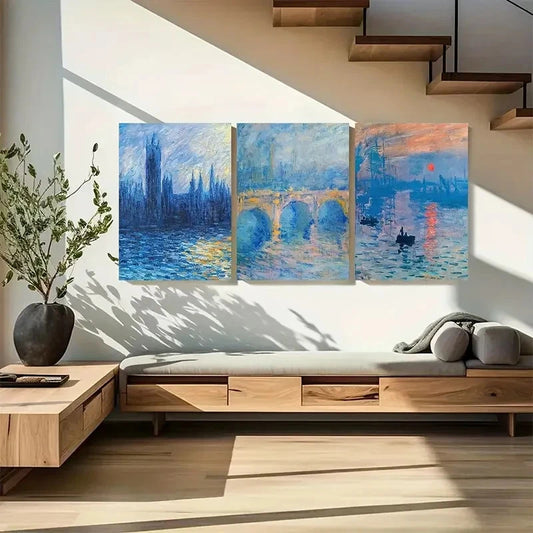 3pcs Claude Monet Vintage Blue Water Wall Art Metal Print Ready to Hang Art