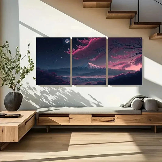 3pcs Japanese Mountain Cherry Blossom Wall Art Metal Print Ready to Hang Art