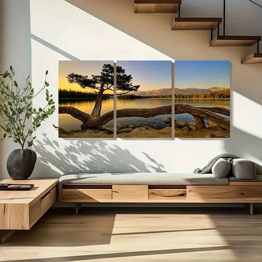 3pcs Calm Lake & Tree at Dawn Wall Art Metal Print Ready to Hang Art