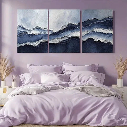 3pcs Abstract Deep Blue and White Wave Wall Art Metal Print Ready to Hang Art