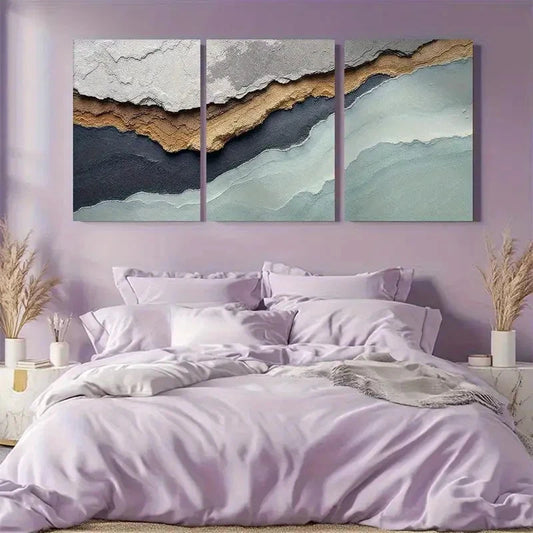 3pcs Abstract Earth Tones with Modern Design Metal Print Ready to Hang Art