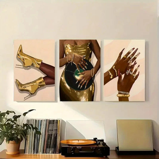 3pcs Golden Boots and Hand Accessories Metal Print Ready to Hang Art