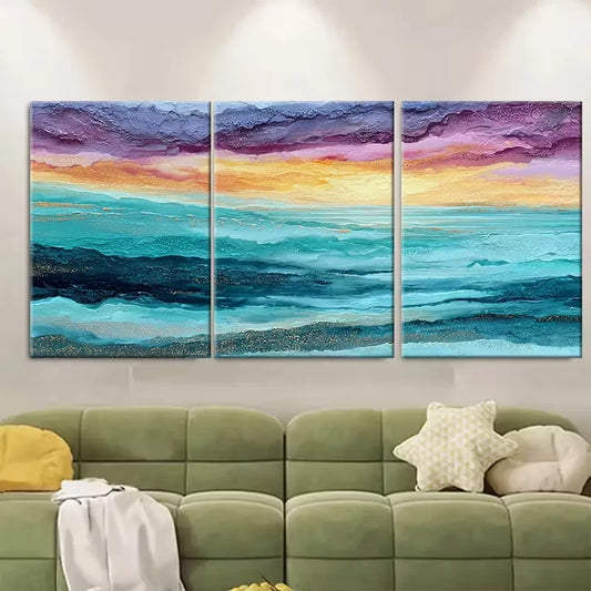 3pcs Abstract Sunset Oil Painting Metal Print Ready to Hang Art