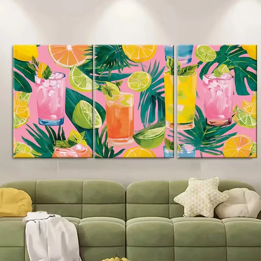3pcs Summer Bar Cart Art Print, Pink Coconut Roos Metal Print Ready to Hang Art