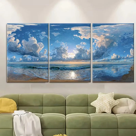 3pcs Abstract Beach Picture & Print Metal Print Ready to Hang Art