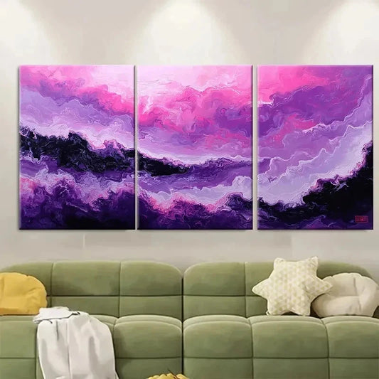 3pcs California Coast Seamless Abstract Purple Metal Print Ready to Hang Art