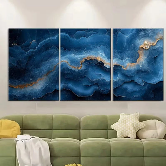 3pcs Blue Marble Textures Metal Print Ready to Hang Art