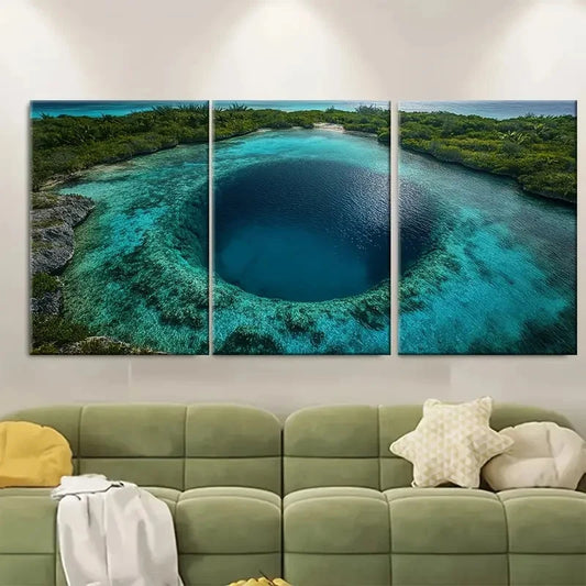 3pcs Retro Bahamas Blue Hole Metal Print Ready to Hang Art