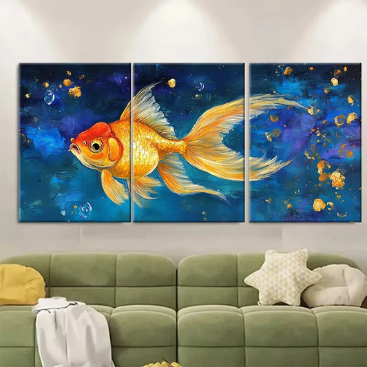 3pcs Goldfish Oil Painting Fish Impasto Metal Print Ready to Hang Art