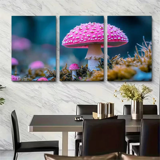 3pcs Pink Mushroom Dreamy Woodland Flowers Metal Print Ready to Hang Art